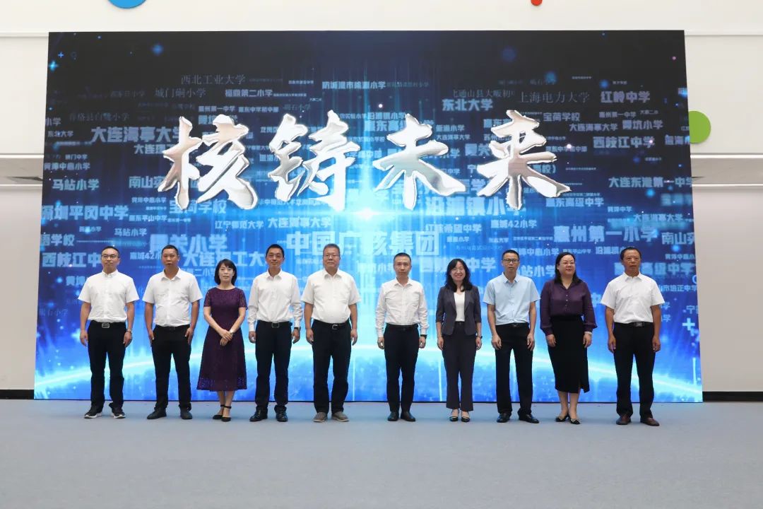 活動當天,中廣核聯合各核電項目周邊百余所學校共同發布核能科普企校共建品牌——“核鑄未來”,中國廣核電力股份有限公司財務總監尹恩剛、中廣核新聞發言人黃曉飛、大亞灣核電運營管理有限責任公司黨委副書記李衛綱、中廣核研究院反應堆工程軟件研究所所長王婷以及六大在運核電基地周邊學校校長代表共同參與品牌發布。